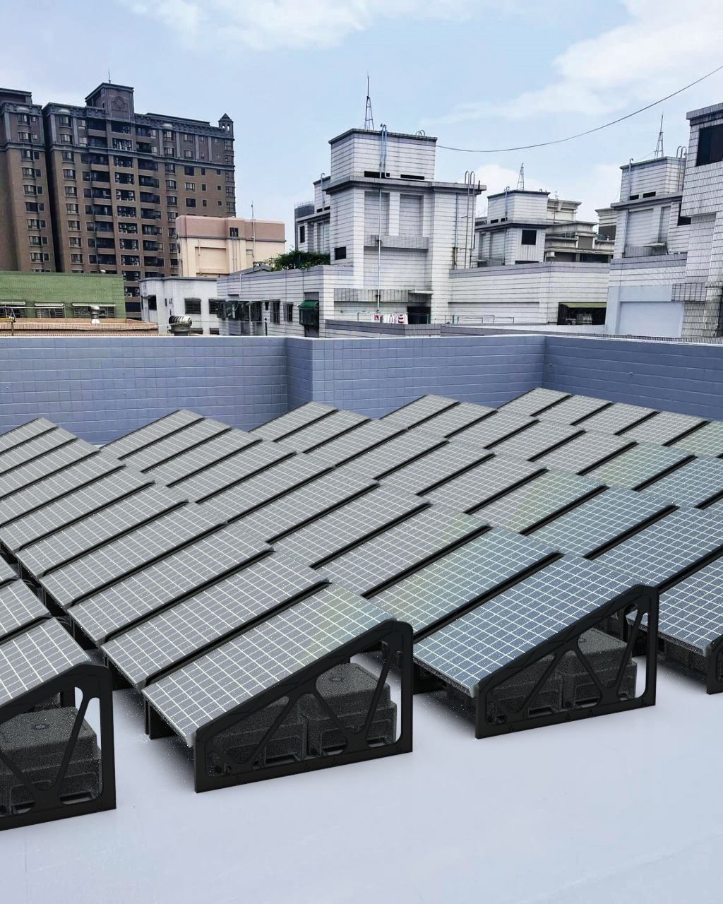 The SOLAR SLOPE developed by ABES is an integrated product, and its structural framework has been carefully designed for easy on-site installation. The bottom of this product is equipped with a water tank, which can effectively counteract buoyancy, so there is no need to use anchor bolts to ensure the integrity of the roof waterproofing system.
